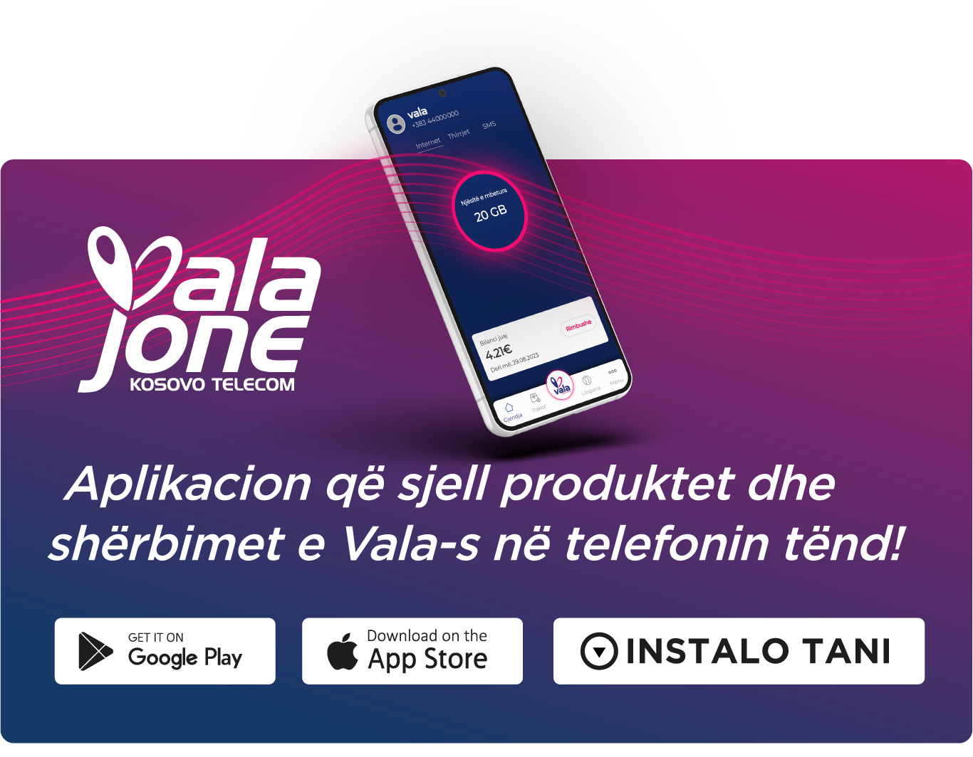For the business category, we offer the Int100 + TV Vala Pro + tel package, providing not only 100Mbps internet capacity but also rich TV content. Additionally, it includes unlimited minutes on the Vala fixed network, 100 minutes for Vala mobile, and access for 5 devices with 5 simultaneous views (streaming). Moreover, you can add up to 10 devices at an affordable price.